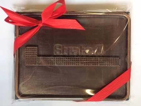 A l'occasion de l'inauguration de Strate J, nous avons développé un produit de haute qualité en association avec deux entreprises jurassiennes. Un moule sur mesure, reproduisant la façade sud du campus a été réalisé par INNOmatérials (implantée dans le Medtech.lab). La chocolaterie Nora et Mario de Porrentruy y ont ensuite coulé un de leur chocolat grand cru.